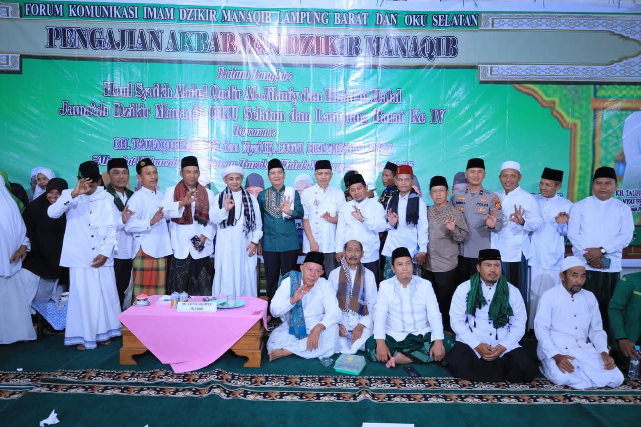 BANDING AGUNG – Dalam momentum yang sarat makna spiritual, Wakil Bupati Ogan Komering Ulu (OKU) Selatan, Drs. H. Misnadi, M.M., M.Si., dengan penuh antusias menghadiri Pengajian Akbar Dzikir Manaqib Syaikh Abdul Qodir Aljailaniy ke-IV untuk wilayah Lampung Barat dan OKU Selatan. Kegiatan ini juga dirangkaikan dengan acara Halal Bihalal serta Haul Syaikh Abdul Qodir Aljailaniy, yang terselenggara dengan hikmah di Masjid Daruth Tho’ah, Desa Sipatuhu, Kecamatan Banding Agung, Kabupaten OKU Selatan, Sabtu (11/04/2026).